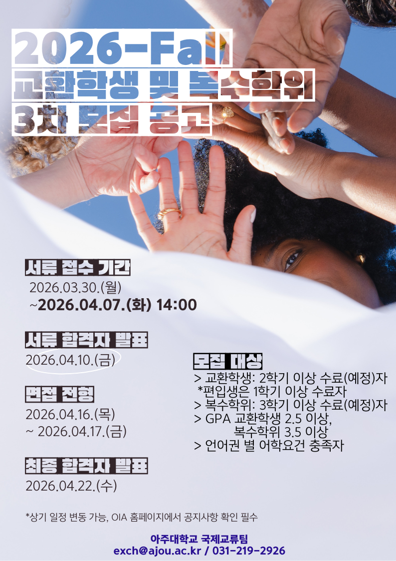 [학사] [국제교류팀] 2026-2학기 파견 교환 및 복수학위 3차모집 공고